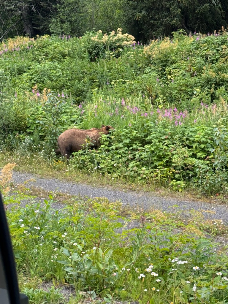 Our next two nights were spent at two different Canada Provincial Parks, Kinasken Lake and Boya Lake. Both sites were gorgeous, lake front sites, with no hookups….and rules about when we can run our generator. well, we made it through the nights, but both times we had the fridge wake up with a low power alarm. Suffice it to say, we learned a lot about what to leave plugged in when we are boon docking, and we learned that we are “power people”. If we have to give up a lakefront site to have power, well then, its good that we have seen lakes before! On the positive side, we saw our first ever wolverine cross the road in front of us! And plenty of black bear. We had the Cassiar highway pretty much to ourselves, 90% of the campers we saw were heading the other way. Looks like most folks use the Cassiar to finish their Alaska loops, not begin them like us!