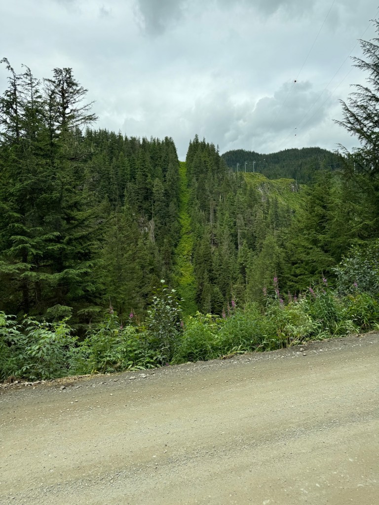 Our first stop was Stewart. On our way into town, we saw our first grizzly. He was just hanging out by the road, and I was so excited I fumbled the camera and missed the perfect shot! From that moment on, we were in constant “scan” mode. Alas, we haven’t seen another yet! We arrived in Stewart early enough that we had the pick of spots in the Community Park Campground. Lovely little spot along a creek, walking distance to “town”, with power, so we were set! Dale had read up on the town, and found that there is a bus that leaves every day at 2pm for a glacier tour. The drive was advertised as a must do, but rough on your vehicle, so Dale was VERY happy that someone else was driving. Gord was a great tour guide and glacier was shockingly amazing to see. We ended the day at the local Mexican restaurant and started the next morning with one last walk around town. Quiet, lovely, a really great stay!