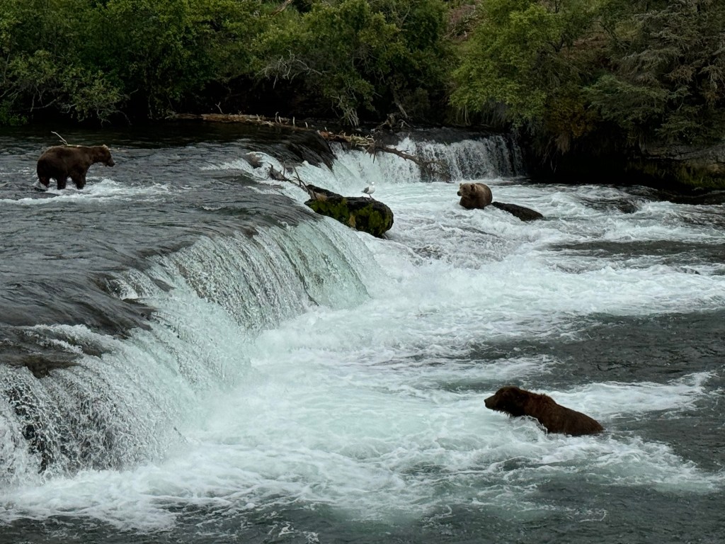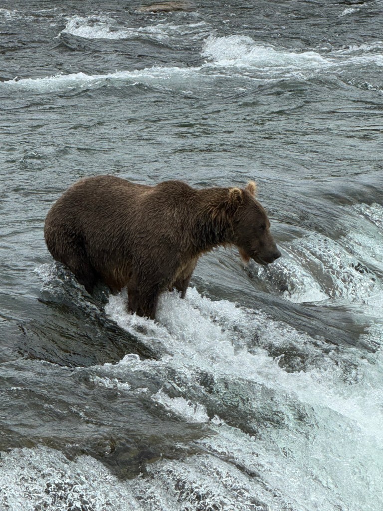 Some of you may remember me talking about a book I read several years ago called “Dear Bob and Sue”. A true story, the authors are a couple from the Seattle area, and set a goal to visit every national park. Then they shared their experiences by email with their friends Bob and Sue. This book inspired my desire to visit the parks, and made me laugh out loud at the descriptions of marital bliss while traveling. I was captivated with his description of both Katmai and Lake Clark National Parks. Katmai, the home of the famous Brooks Falls Brown Bears, I had already booked my day trip for the 14th. It involved a float plane trip over, which Dale had no interest in, so I was on my own for that one. Lake Clark was a bigger challenge.