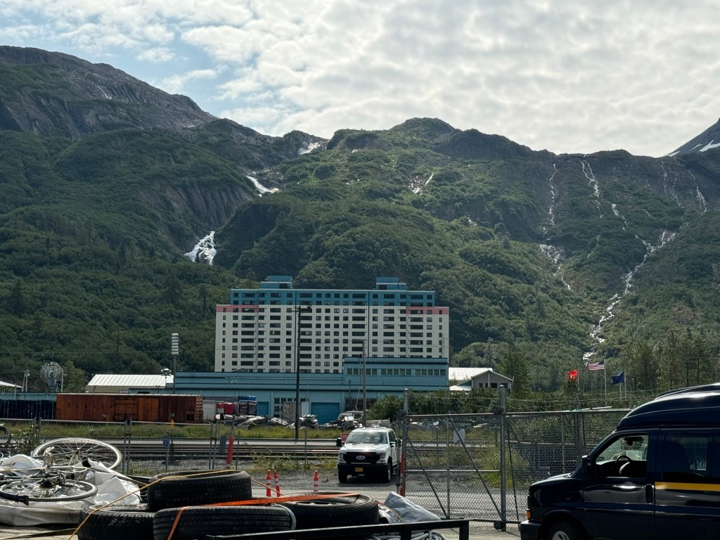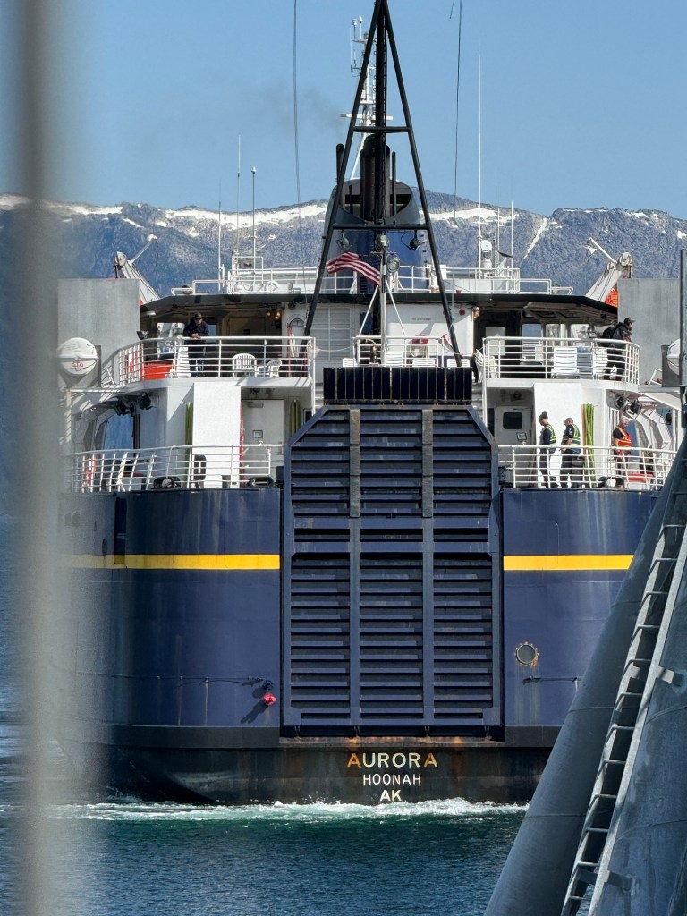 The next morning we were back to clear beautiful cold skies. So off to Whittier we went. I had been reminded that we first learned about Whittier from a bit on CBS Sunday morning, I cant even guess at how many years ago. All I remember is that there is one huge apartment building where nearly the entire town lives. I couldn’t wait to see it. You get there via a one lane tunnel, so you line up for the tunnel opening on the Half hour. The 2.5 mile tunnel is an experience all by itself! And once we were through and into Whittier, we felt like we were back in Iceland. On the water, surrounded by hills, glaciers and waterfalls, it is a charming little place. The famous apartment building was fun to see, and it remains the place where the majority of town inhabitants live. The quick military history of the town – built during Cold War era as a “secret base”, it was fully staffed from 1954 until 1960. Six years and they mothballed it! (I will let you all form your own opinions of that one). Anyway, It was so gorgeous outside we had to go for a hike. I found Emerald Cove Trail, advertised as four miles of moderately rolling hills which I thought would be okay for Dale’s knees. It wasn’t until we were heading down the path that I was able to have enough cell phone coverage to read the reviews – from three weeks prior when the rains had come….muddy, muddy, muddy….but we went for it anyway. We were able to hike it without mud up to our shins, but it wasn’t easy ( I think Alaska hikers have a different definition of what makes a trail moderate) , and we only made it about half way before we realized we had to turn around or risk missing our ferry! It was a helluva workout – and made me glad I didn’t push harder for the Portage Pass hike (2.5 miles up hill climb to a glacier). We had a lovely lunch at the Chez Dale Food Truck, and then lined up for the ferry. We are so glad we did it. It was a nice taste of what we are in for when we leave Haines in about a week. The amount of work they put into getting the vehicles loaded and unloaded is really impressive. It’s much more of a Tetris game than anything we encountered on a Washington State ferry. The views along Prince William Sound are mesmerizing. And wow did we see stellar sea lions! We must have passed hundreds. We rolled into our campsite around 8:45pm and ready for a GOOD nights sleep.