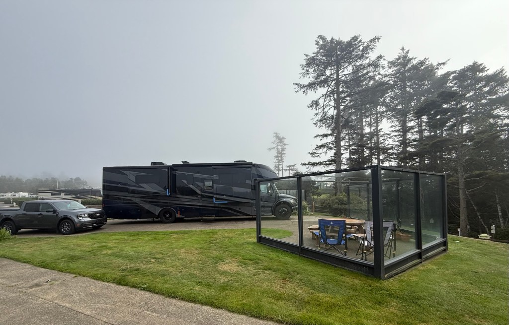 The next stop was in Newport, Oregon, at an even posher RV resort. This one right on the ocean. These sights are “ownable”, and the owners can rent their space out, but must commit to do so more than 50% of the year. So if the owner is a true snowbird, their site sits empty when they are in warmer climes. We made the most of our time there, found a GREAT hike, enjoyed some nice beach walking right from our resort, toured up and down the coast and finally found some golf. It was pleasant and pretty enough, but WINDY. The Oregon Coast does have some of the prettiest ocean views, but I still prefer the mountains of Bend!